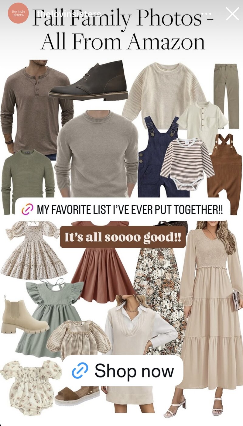 This fall, I've partnered with The Lovin Sisters to bring you an abundance of made-for-you outfit pairings for your whole family. These perfectly exemplify the color palettes that will keep your fall photos light and airy, yet rich for the season, which is consistent with the images you see in my portfolio. Visit their Amazon Store Front and take a look around. You can use outfits as inspiration to build your own or, if you love any of the pieces shown, simply add them to your cart using the clickable shopping links! (Please note that while The Lovin Sisters receive commissions for their sales, Melissa Mayrie Photography does not and is in no way affiliated with their store front.)